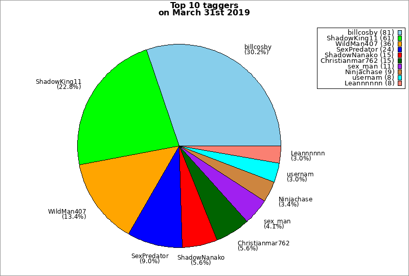 | Top 10 taggers on March 31st 2019 | ||