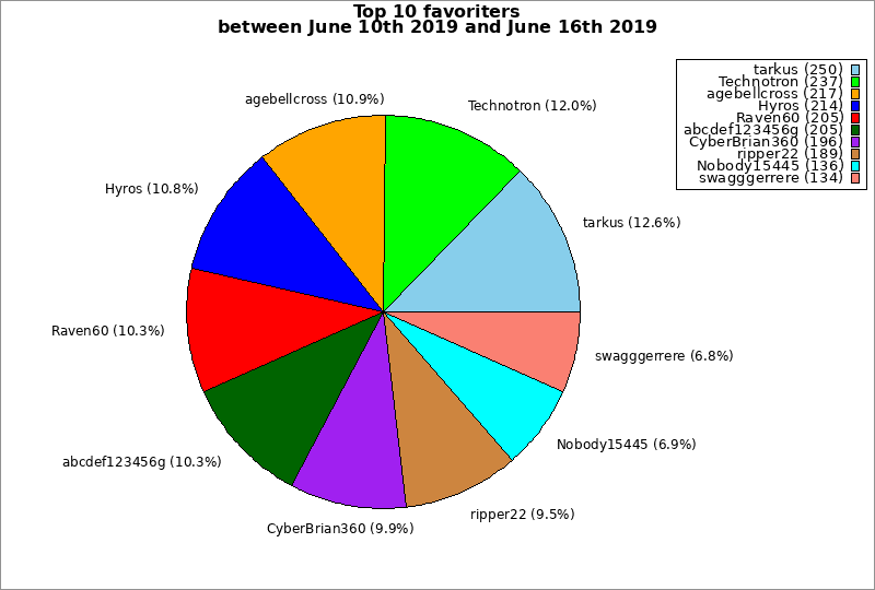 | Top 10 favoriters between June 10th 2019 and June 16th 2019 | ||