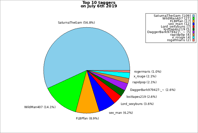 | Top 10 taggers on July 6th 2019 | ||