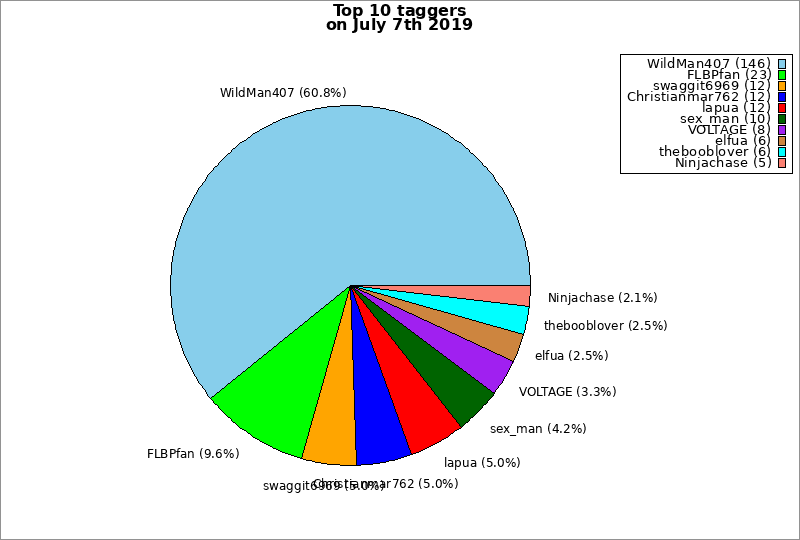 | Top 10 taggers on July 7th 2019 | ||