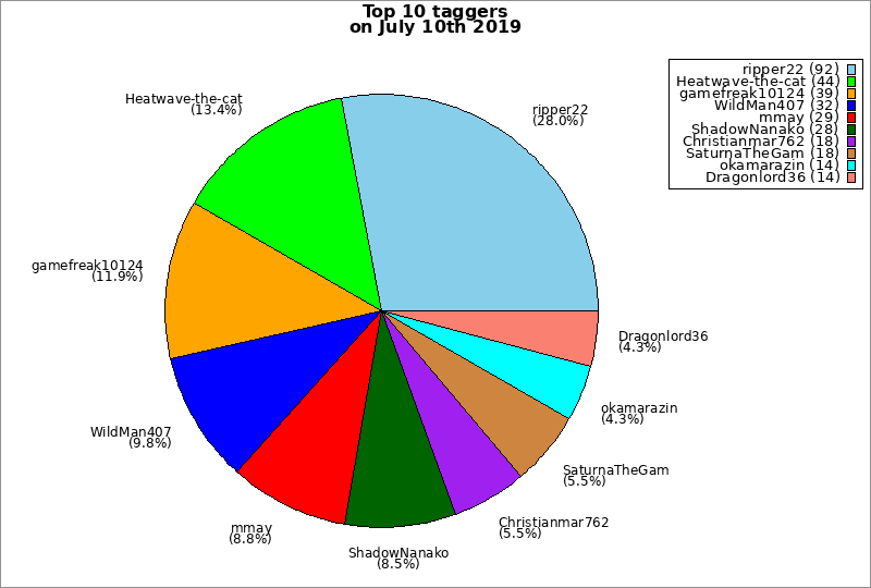 | Top 10 taggers on July 10th 2019 | ||