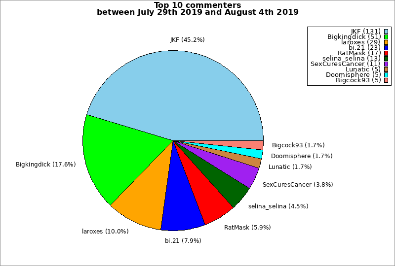 | Top 10 commenters between July 29th 2019 and August 4th 2019 | ||