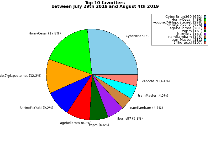 | Top 10 favoriters between July 29th 2019 and August 4th 2019 | ||