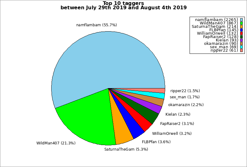 | Top 10 taggers between July 29th 2019 and August 4th 2019 | ||