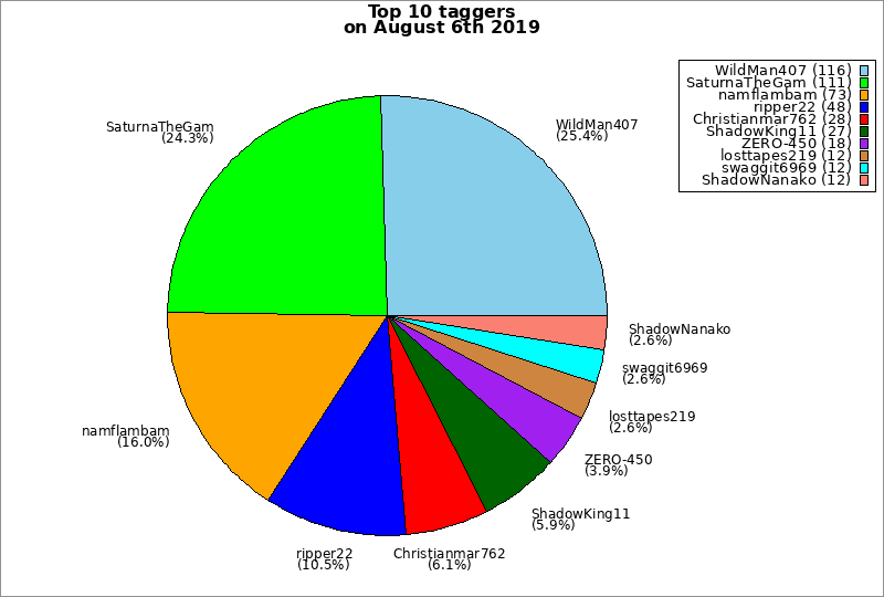| Top 10 taggers on August 6th 2019 | ||