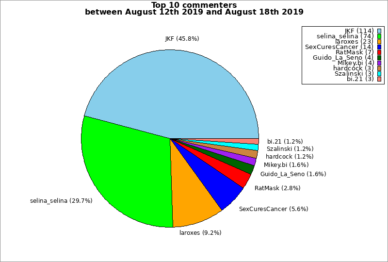 | Top 10 commenters between August 12th 2019 and August 18th 2019 | ||