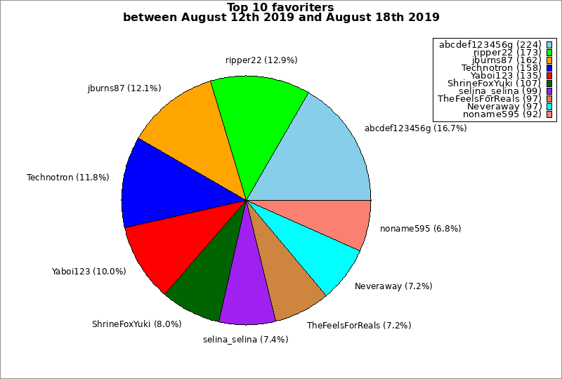 | Top 10 favoriters between August 12th 2019 and August 18th 2019 | ||