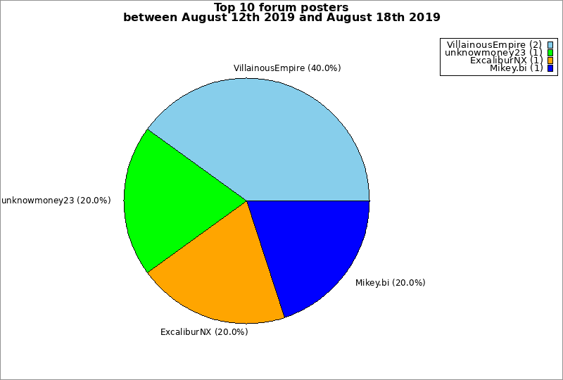 | Top 10 forum posters between August 12th 2019 and August 18th 2019 | ||