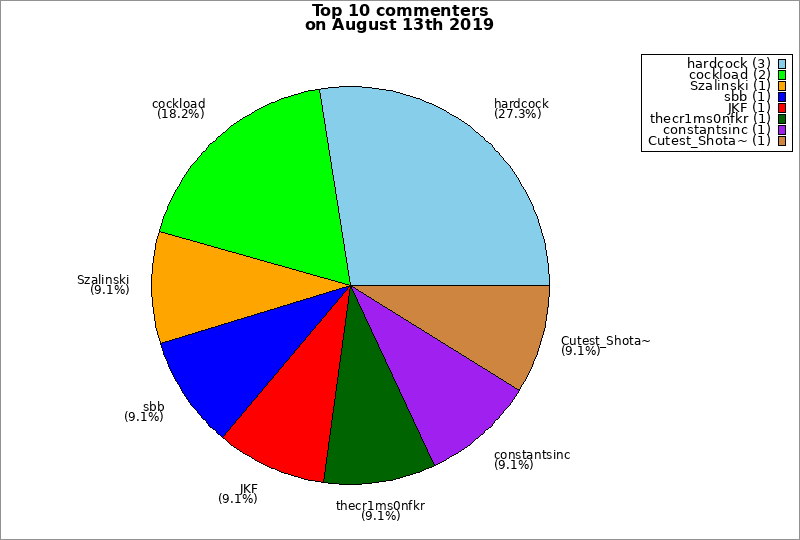 | Top 10 commenters on August 13th 2019 | ||