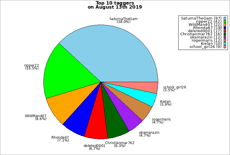 | Top 10 taggers on August 13th 2019 | ||