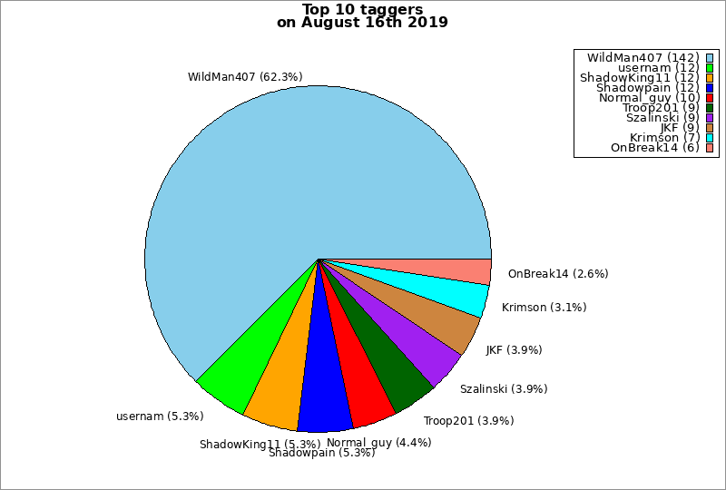 | Top 10 taggers on August 16th 2019 | ||