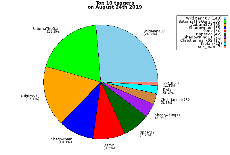 | Top 10 taggers on August 24th 2019 | ||