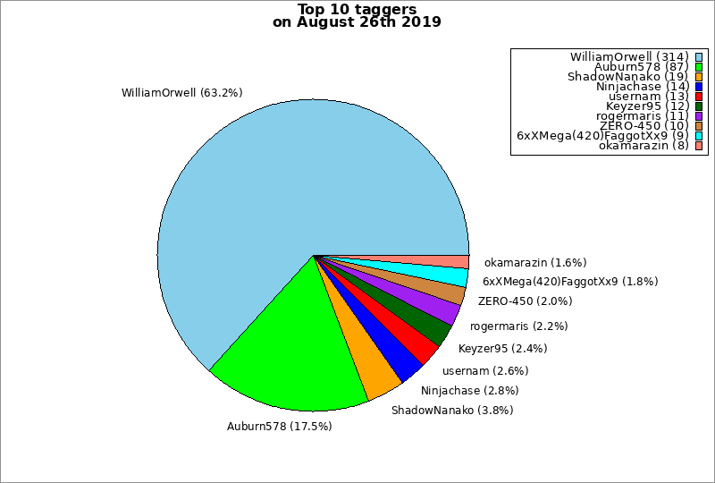 | Top 10 taggers on August 26th 2019 | ||