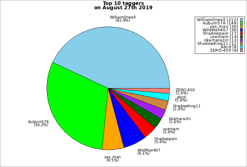 | Top 10 taggers on August 27th 2019 | ||