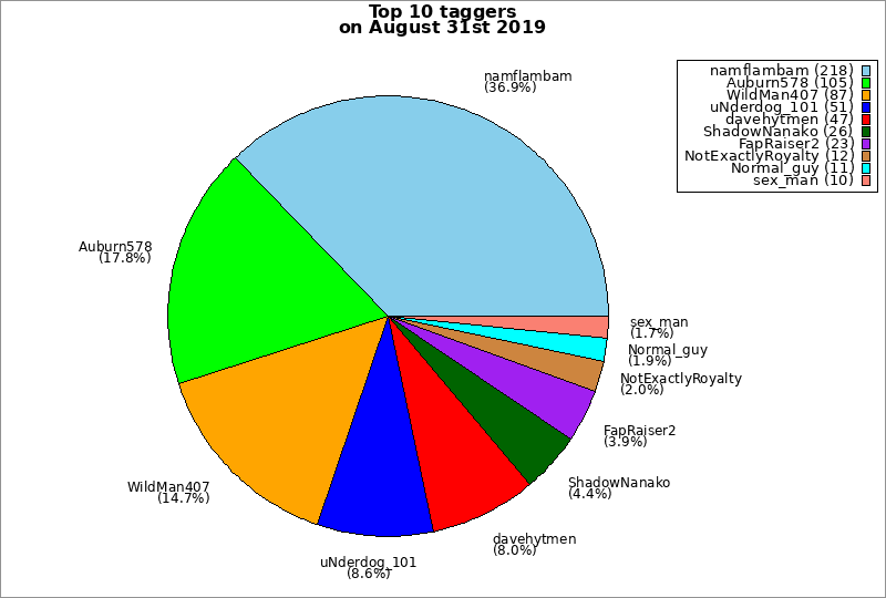 | Top 10 taggers on August 31st 2019 | ||