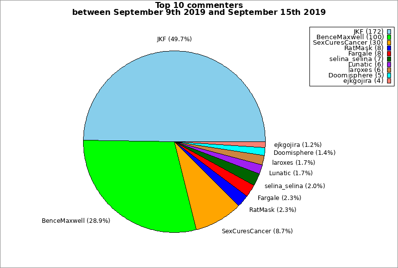 | Top 10 commenters between September 9th 2019 and September 15th 2019 | ||