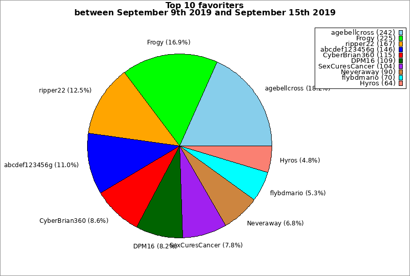 | Top 10 favoriters between September 9th 2019 and September 15th 2019 | ||
