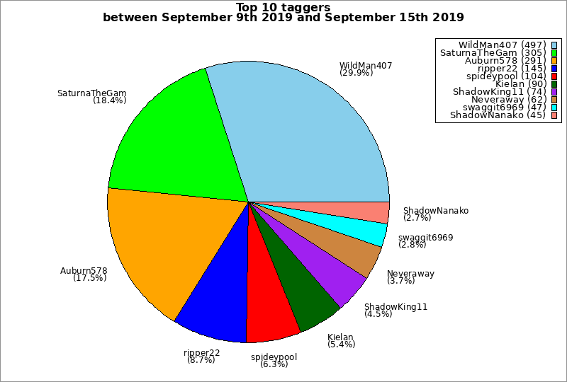 | Top 10 taggers between September 9th 2019 and September 15th 2019 | ||