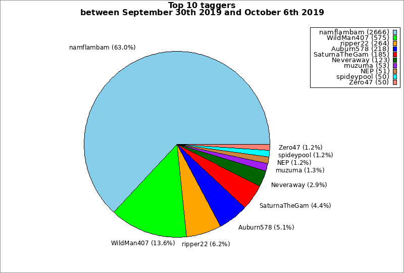 | Top 10 taggers between September 30th 2019 and October 6th 2019 | ||