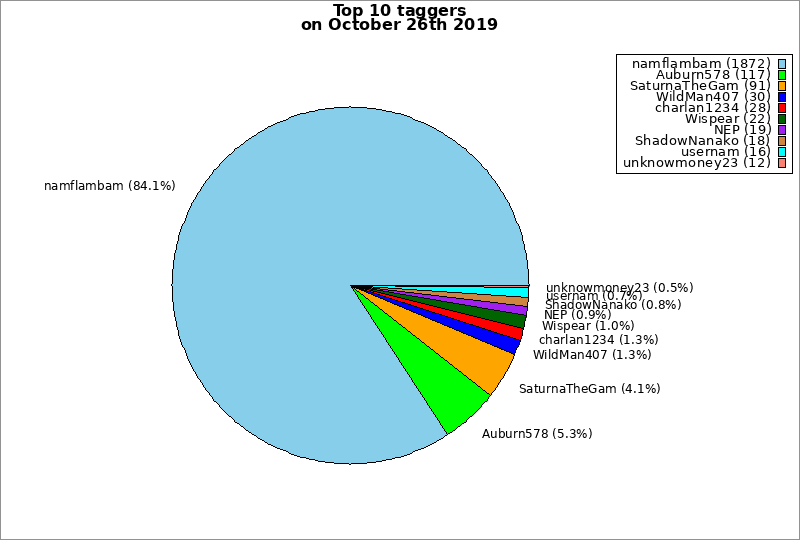 | Top 10 taggers on October 26th 2019 | ||