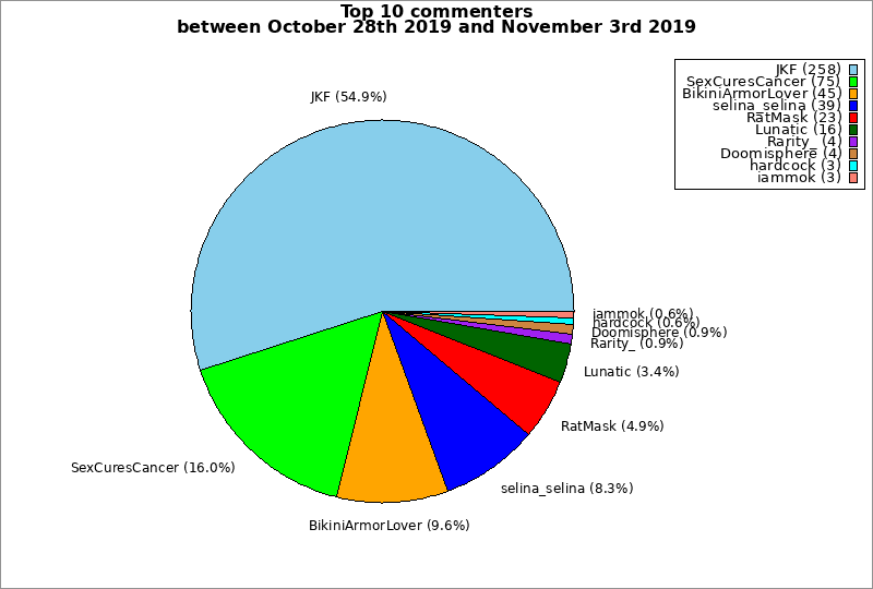 | Top 10 commenters between October 28th 2019 and November 3rd 2019 | ||