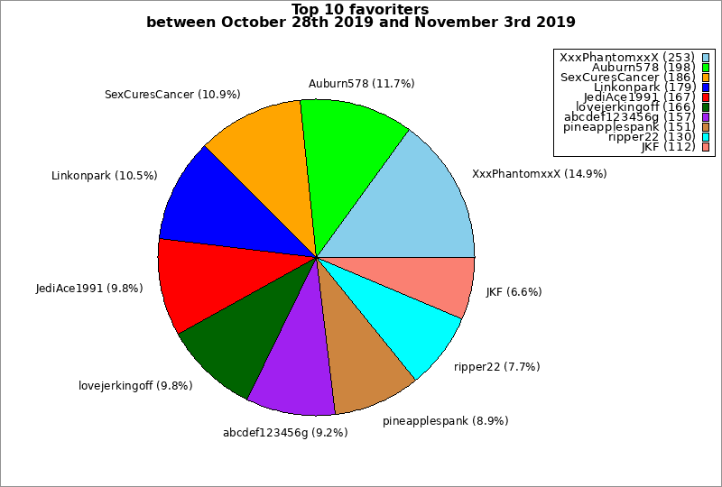| Top 10 favoriters between October 28th 2019 and November 3rd 2019 | ||