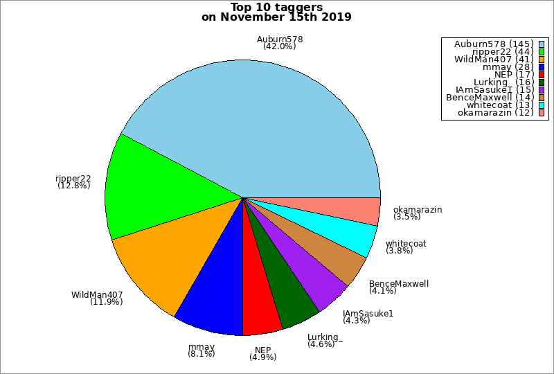 | Top 10 taggers on November 15th 2019 | ||