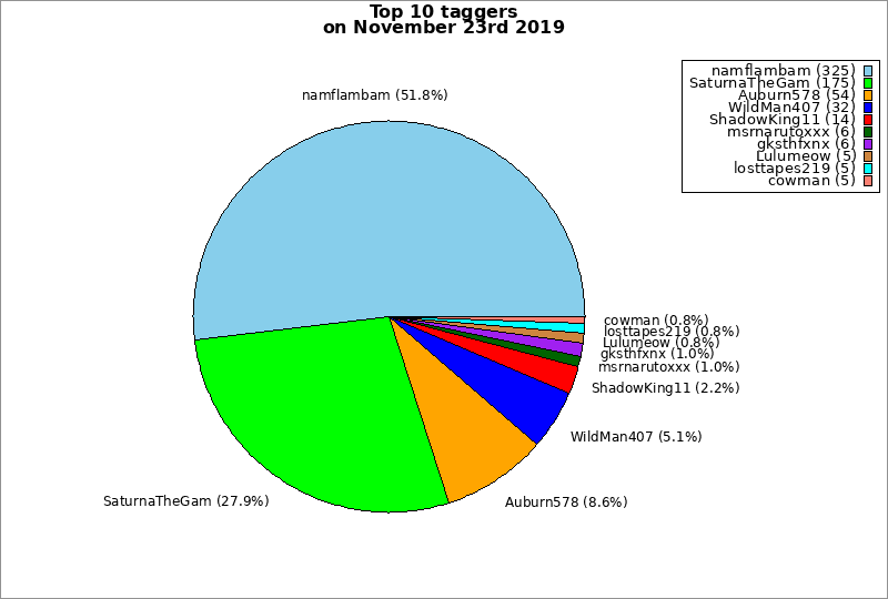 | Top 10 taggers on November 23rd 2019 | ||
