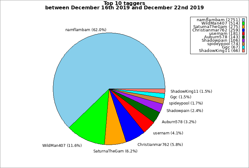 | Top 10 taggers between December 16th 2019 and December 22nd 2019 | ||
