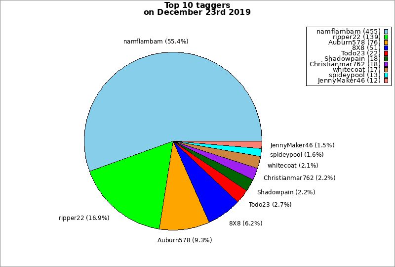 | Top 10 taggers on December 23rd 2019 | ||