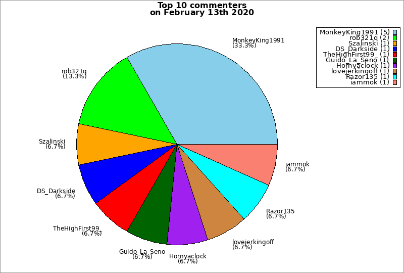 | Top 10 commenters on February 13th 2020 | ||