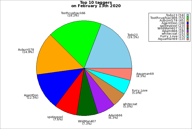 | Top 10 taggers on February 13th 2020 | ||