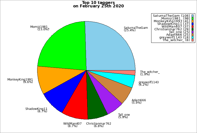 | Top 10 taggers on February 25th 2020 | ||