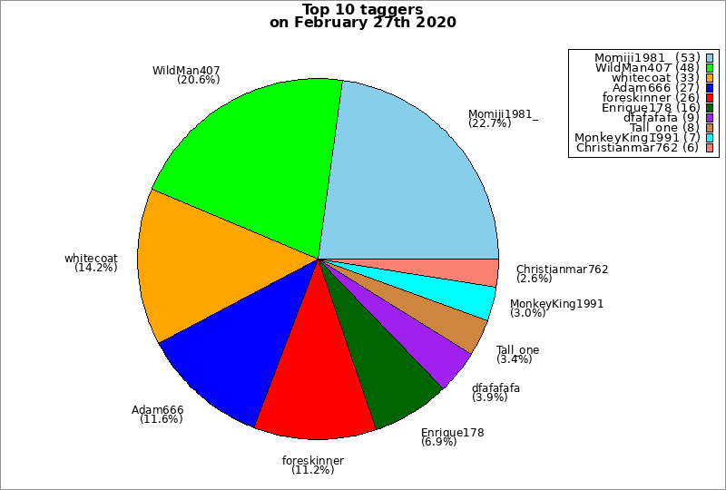 | Top 10 taggers on February 27th 2020 | ||