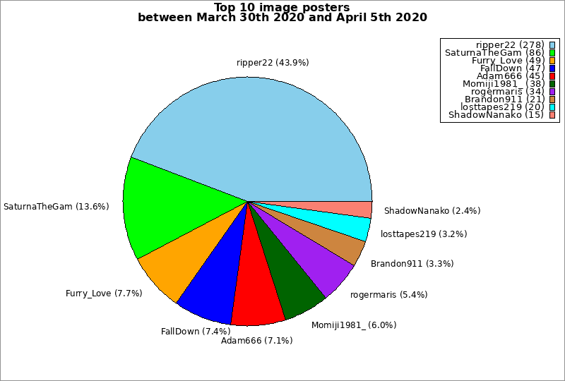 | Top 10 image posters between March 30th 2020 and April 5th 2020 | ||
