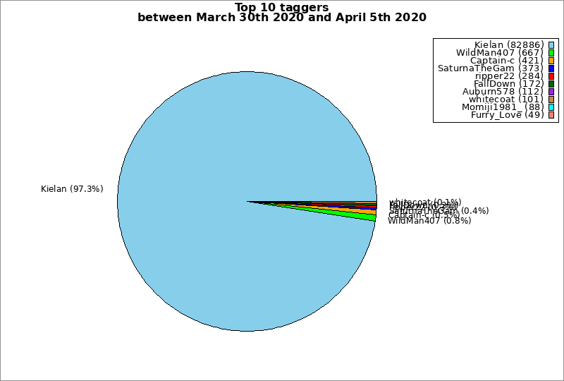 | Top 10 taggers between March 30th 2020 and April 5th 2020 | ||
