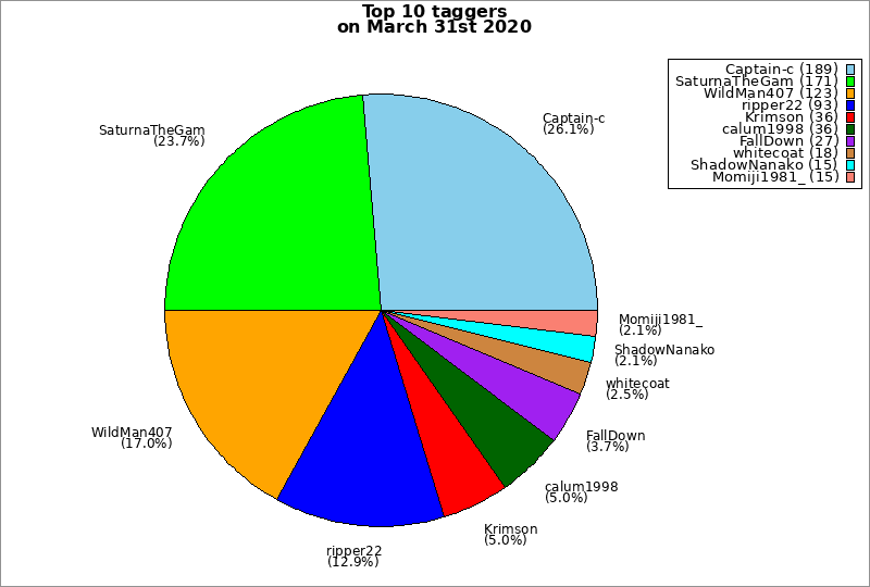 | Top 10 taggers on March 31st 2020 | ||