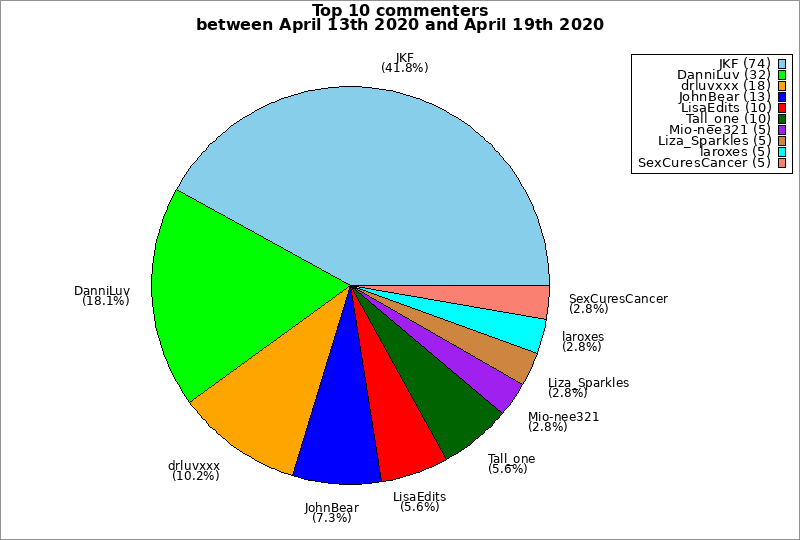 | Top 10 commenters between April 13th 2020 and April 19th 2020 | ||