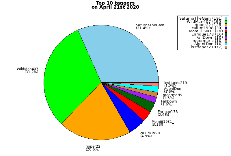 | Top 10 taggers on April 21st 2020 | ||