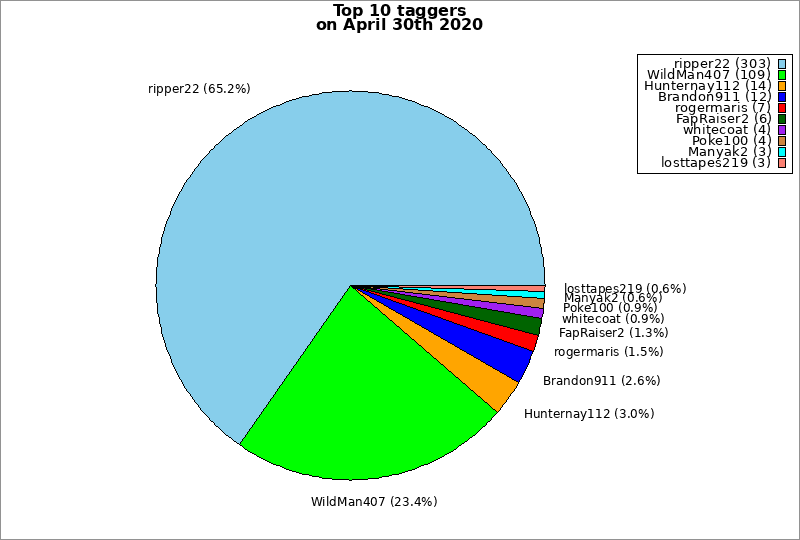 | Top 10 taggers on April 30th 2020 | ||