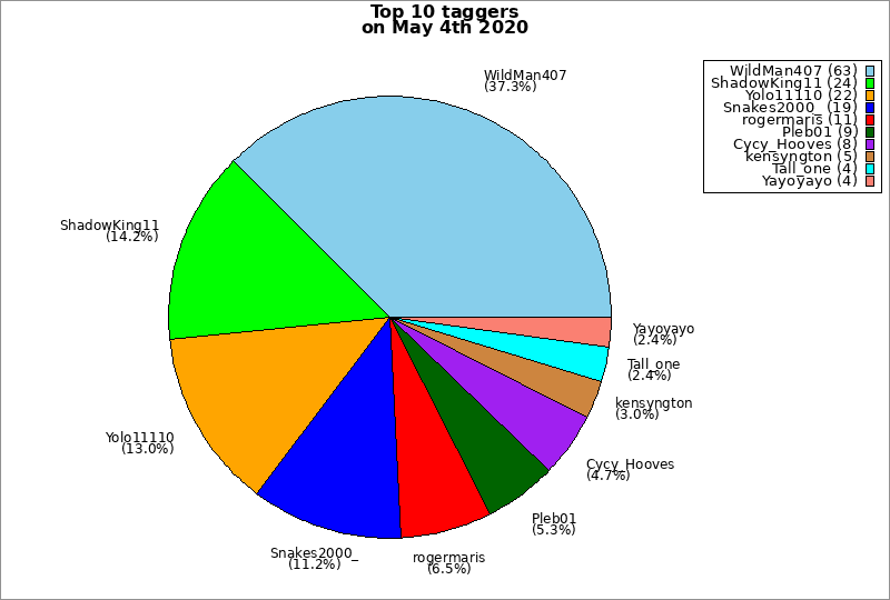 | Top 10 taggers on May 4th 2020 | ||