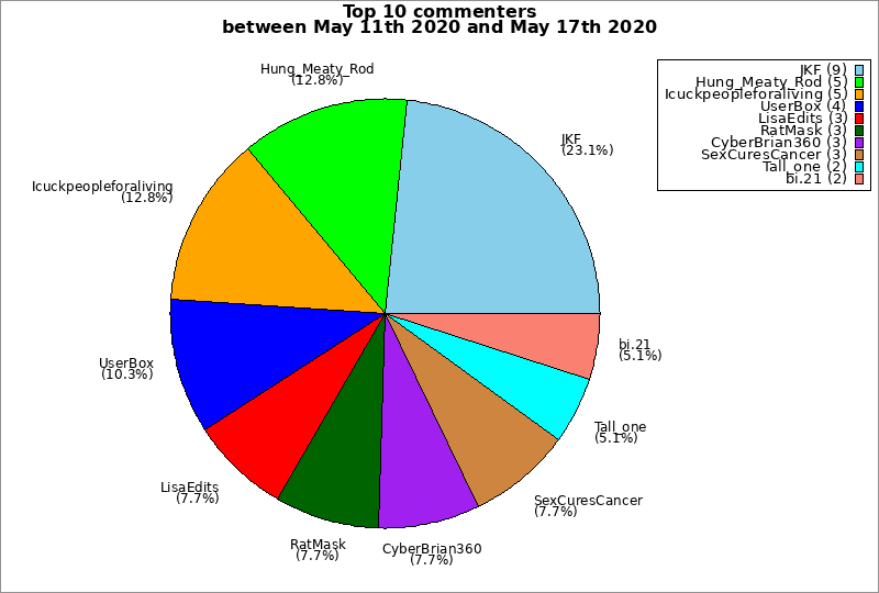 | Top 10 commenters between May 11th 2020 and May 17th 2020 | ||