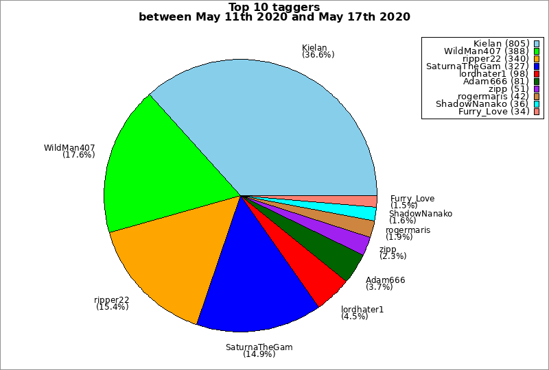 | Top 10 taggers between May 11th 2020 and May 17th 2020 | ||