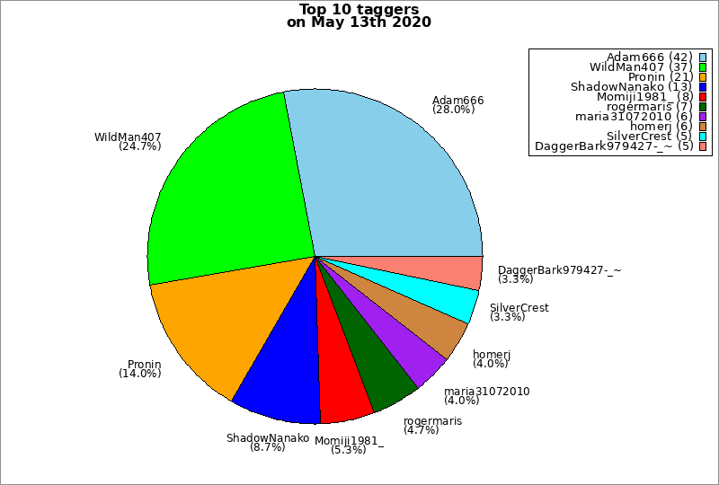 | Top 10 taggers on May 13th 2020 | ||