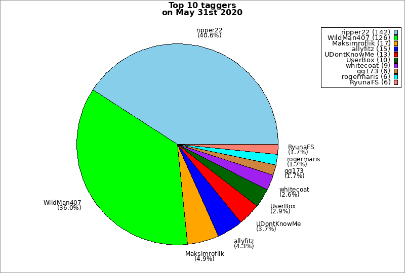 | Top 10 taggers on May 31st 2020 | ||