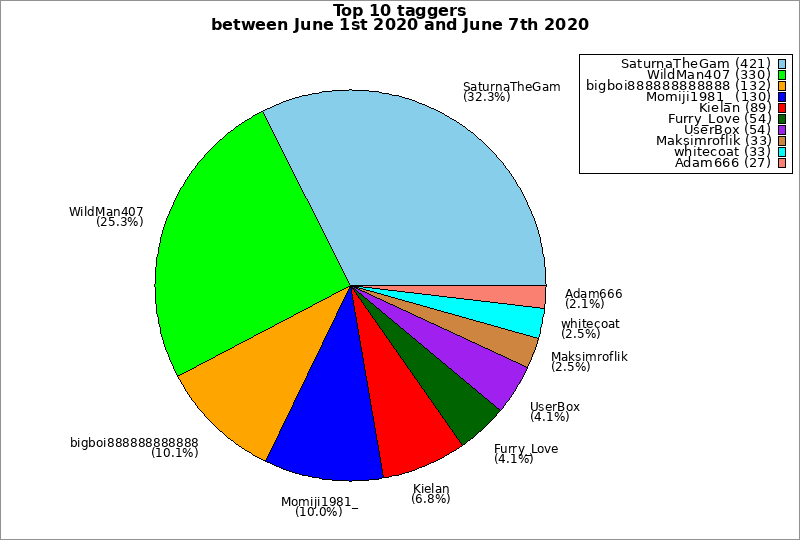 | Top 10 taggers between June 1st 2020 and June 7th 2020 | ||
