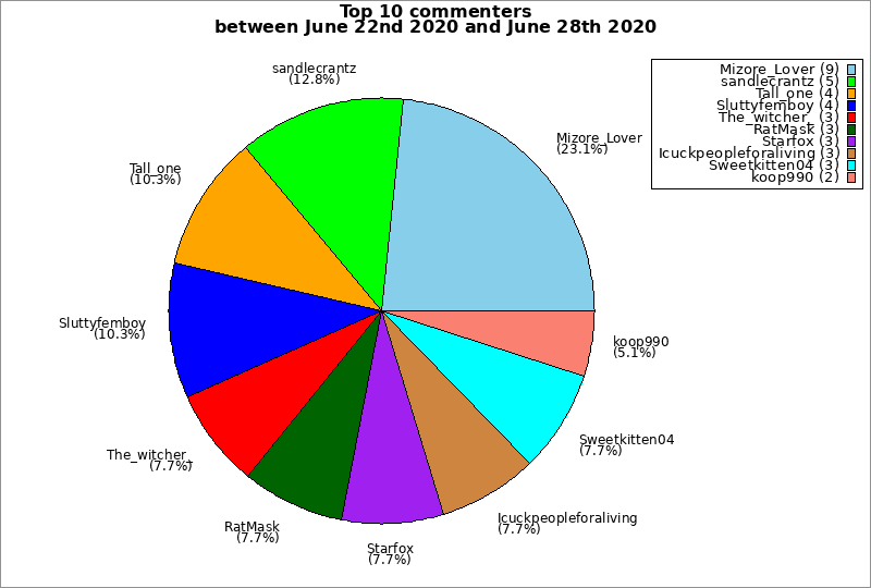 | Top 10 commenters between June 22nd 2020 and June 28th 2020 | ||