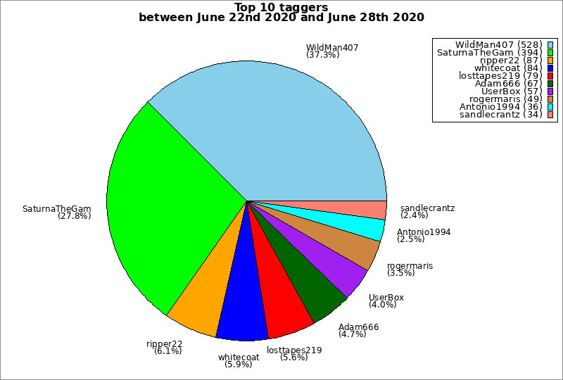 | Top 10 taggers between June 22nd 2020 and June 28th 2020 | ||