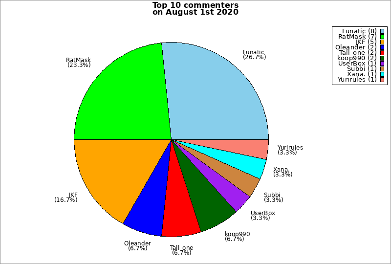 | Top 10 commenters on August 1st 2020 | ||