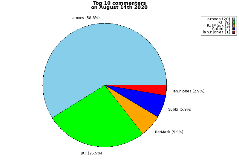 | Top 10 commenters on August 14th 2020 | ||